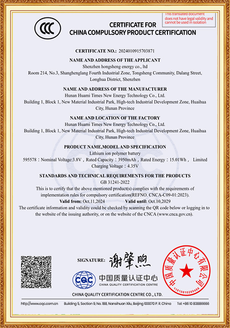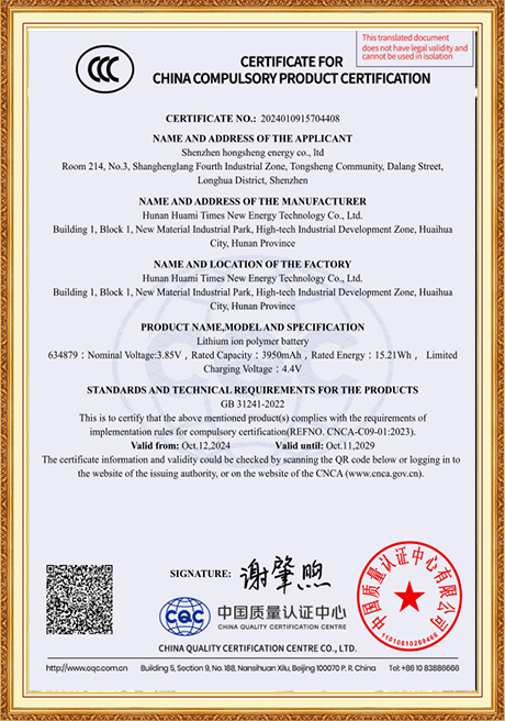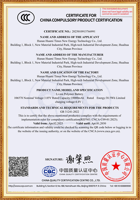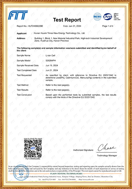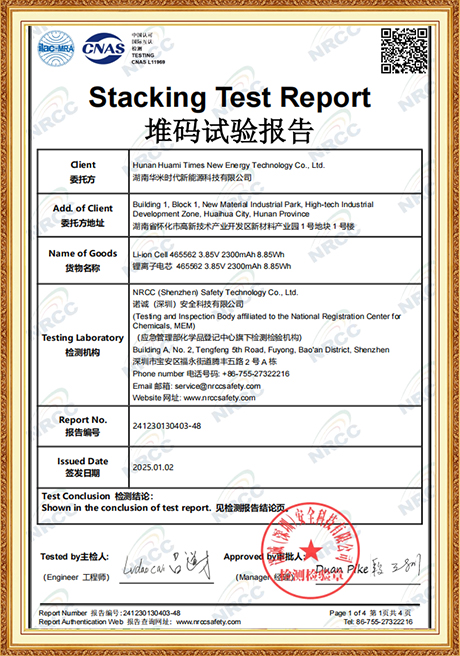 We place great emphasis on talent development and technological advancement, and we adhere firmly to the business philosophy of Quality First, Customer Foremost. Stringent quality control measures are implemented throughout the production process to ensure that every single battery meets our clients’ exact specifications. To sustain our commitment to delivering superior products and to further solidify our presence in the lithium battery industry, we invested in and set up Hunan Huami Times New Energy Technology Co., Ltd. in 2024. With a registered capital of RMB 62.5 million, the subsidiary saw over RMB 50 million invested in fixed assets for its Phase I development, with Phase II construction slated to launch in 2025. Equipped with state-of-the-art, highly automated production lines and equipment, the company is managed by a team of seasoned, professional executives. Phase I operations generate an annual output value of RMB 300 million, and upon the completion of Phase II, the combined annual output value is projected to reach RMB 600 million. We firmly believe that exceptional product quality and services are the cornerstones of earning and retaining customer trust and loyalty.